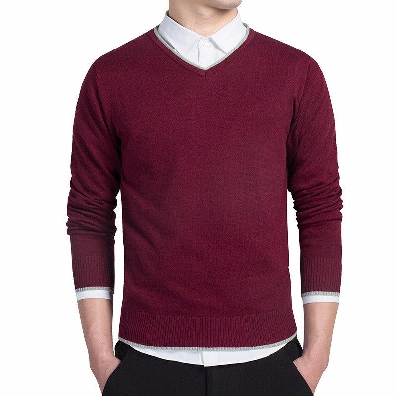 Πλεκτό Ζεστό Πουλόβερ Με Λαιμόκοψη V